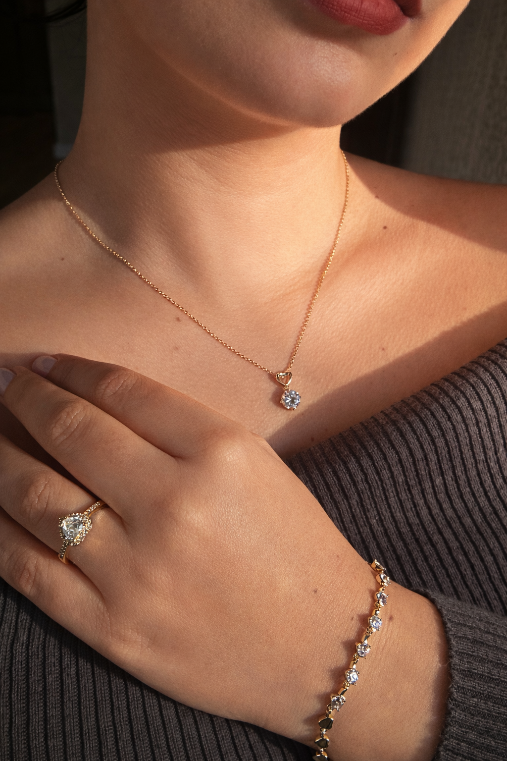 Setimiz kolye, küpe, bileklik ve yüzükten oluşmaktadır.