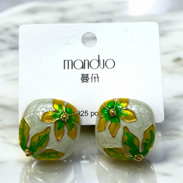Flowered Mineli Çelik Küpe