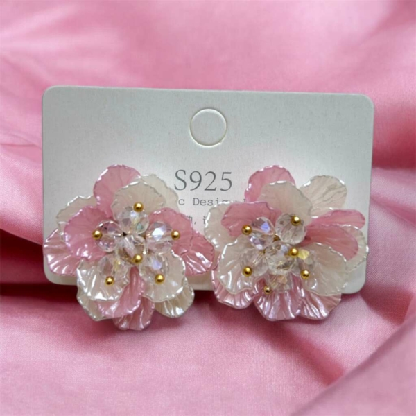 Flowered Mineli Çelik Küpe